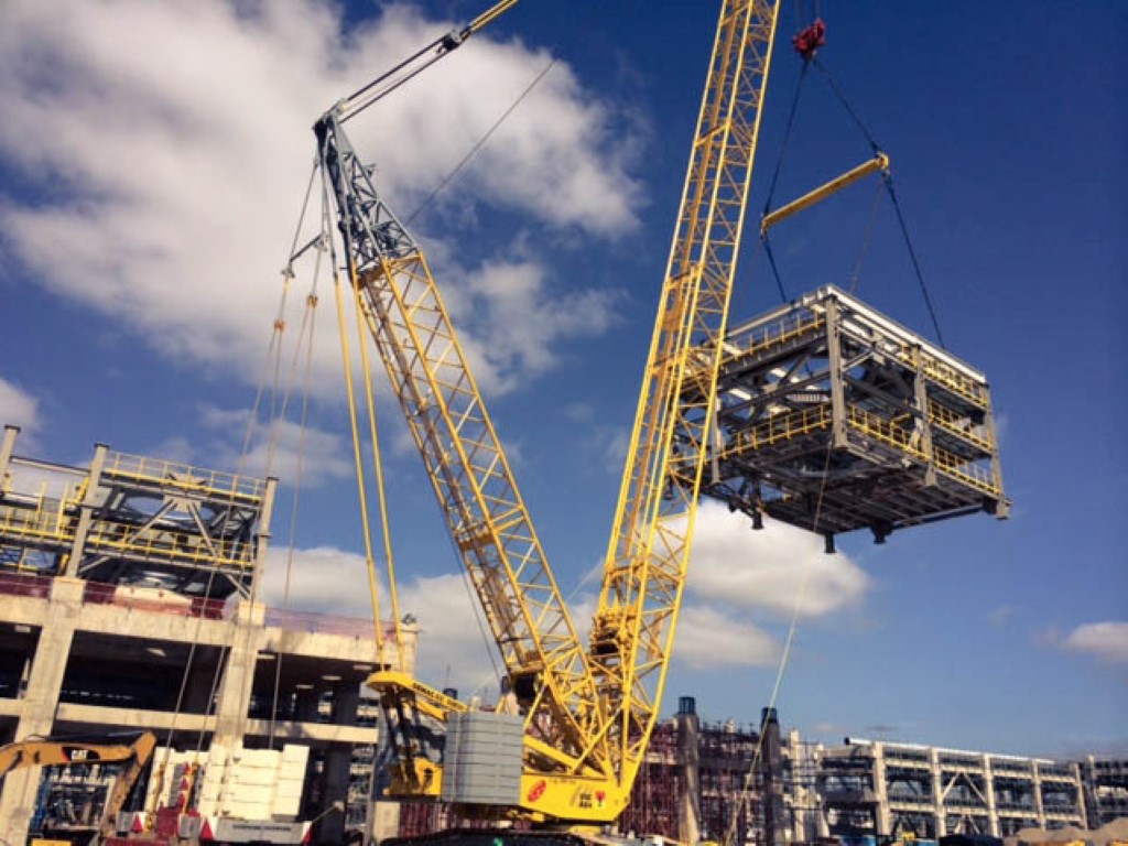 Implementation of modularization strategy for a 70m (230ft) multi-story industrial building and heavy lift verification for mechanical equipment weighting up to 900Tons.