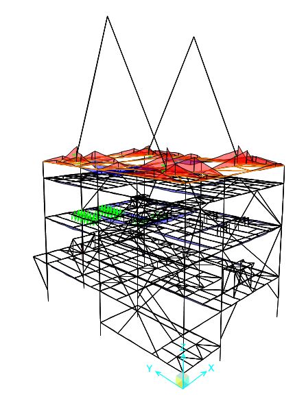 Erection engineering, Heavy Lift analyses and connection peer review for the roofing. Large scale and very irregular steel modules where assembled, weighting up to 400Tons.