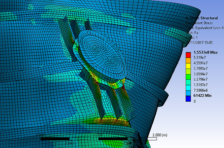Emasa Engineering designed, together with ALE’s engineering team, the methodology for the installation of the steel chimney in sections. Advanced Finite Element Analysis were used for the lifting trunnion design, for cable length sensitivity analysis, and for the verification of the chimney’s shell against buckling.